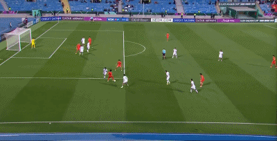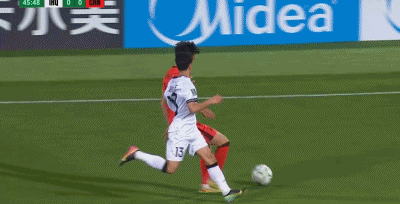 中国队全场最好的机会,是李镇全从左肋突进去下底倒三角,杨希后插上打飞。