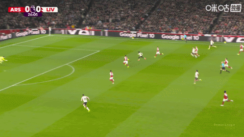 足球日报01月09日播报讯 英超第21轮阿森纳vs利物浦,第27分钟,萨利巴和拉亚失误,布拉德利吊射击中横梁!