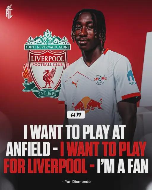 据悉,利物浦对RB莱比锡前锋扬·迪奥曼德很感兴趣,而这位19岁的边锋透露,他的梦想就是为安菲尔德球队效力。近日,迪奥曼德在Instagram直播时用法语直言:“我想在安菲尔德踢球,我想为利物浦效力。我是铁杆利物浦球迷,我父亲的梦想就是看我穿上红军战袍。”