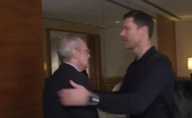 在对阵巴塞罗那的西超杯决赛前,皇马TV正在播出主席弗洛伦蒂诺向球队各位球员、工作人员致意的镜头,老佛爷与姆巴佩、维尼修斯等人亲切拥抱,但当阿隆索出现在画面中时,皇马TV立即切换了画面。