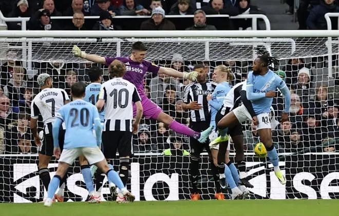 下半场一开始,纽卡再次错过领先的机会,吉马良斯的补射被圣詹姆斯公园球场的球门立柱无情拒绝。2分钟后,曼城全场的首次射正就取得了进球——多库左路突破下底传中,贝尔纳多前点一蹭,中路跟上的塞梅尼奥近距离推射空门得手。