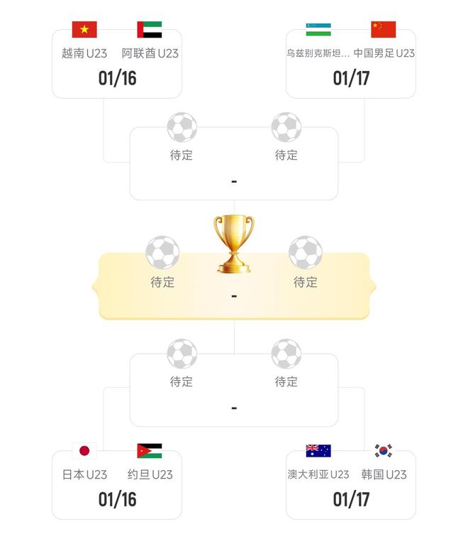1月17日19点30分钟,国足U23将在1/4决赛中迎战C组第1的乌兹别克斯坦。