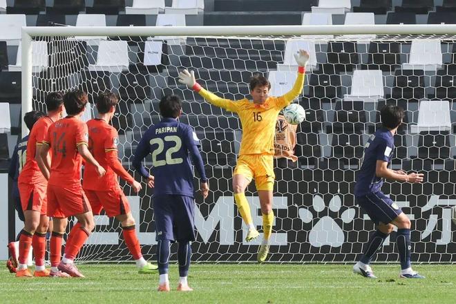 上半场的真正考验集中在门将李昊身上。第22分钟,泰国队任意球传入禁区,形成的头球攻门被李昊稳稳没收;第37分钟,拜合拉木头球解围失误,皮球直奔自家球门,李昊反应神速单掌将球挡出;第42分钟,泰国队边路传中,李昊奋力腾空托出险情,身体重重撞在门柱上之后仍坚守岗位。这位曾留洋西班牙的年轻门将,用三次极限扑救保住球门不失,成为上半场球队的定海神针。当然中国队也并非全无攻势,第44分钟,蒯纪闻禁区内晃开角度传中,后点的杨皓宇错失头球良机,上半场双方0比0互交白卷。