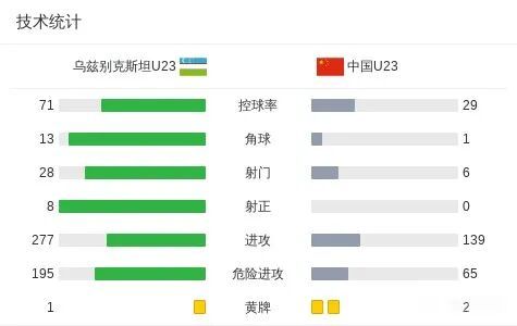 看一眼数据统计,你简直不敢相信中国队能赢:控球率29%对71%,射门6次对28次,角球1个对13个。