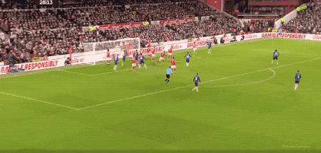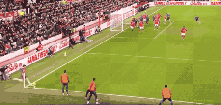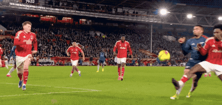 第80分钟,替补登场的热苏斯扰乱森林防线,埃纳禁区内手球,VAR介入,泰勒认定没有点球。
