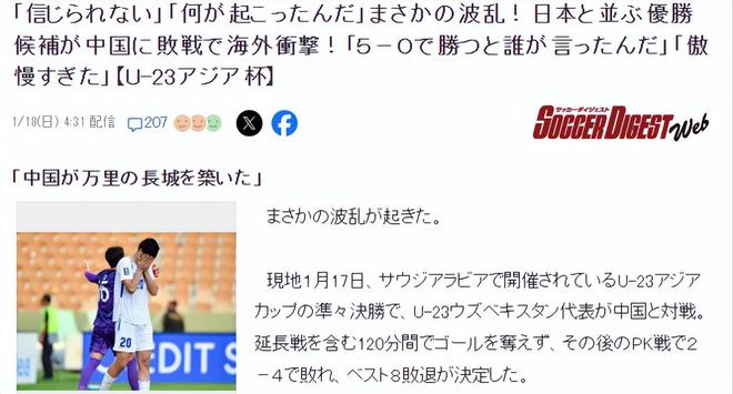 罕见!日媒关注U23国足:“难以置信”+“谁说乌兹会5比0赢的”