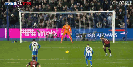 第90分钟,范黑克助攻,科斯图拉斯倒钩绝平,布莱顿1-1
