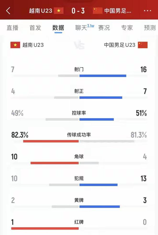 你说国足没有进攻,对阵越南的半决赛,U23男足交出一张全方位碾压的试卷。全场比赛,国足控球率51%:49%领衔,全场16次射门7次射正攻入3球,而越南则是7次射门4次射正。越南家媒体提前开香槟,结果输得一塌糊涂。