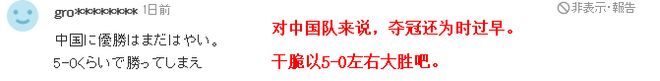 这位日本球迷在评论区表示(上图),对于中国队来说,夺冠还为时过早。干脆来一场5-0左右大胜吧。有意思的是,很多日本球迷纷纷预测3比0赢球。比如(下图)此网友认为就算对方死守得再严密,进3球也是理所应当!对手是中国队!正常发挥就行!
