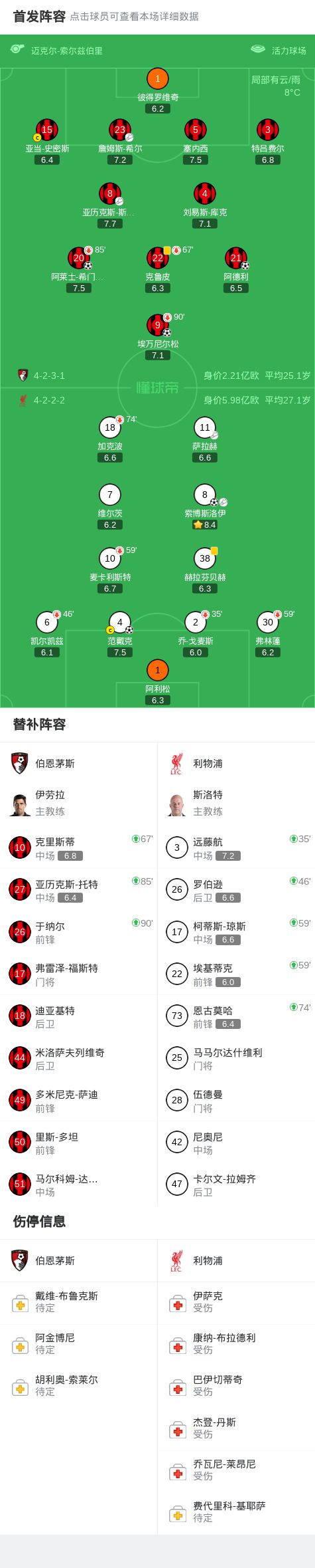 剑南春|利物浦2-3伯恩茅斯,范戴克破门,索博斯洛伊传射