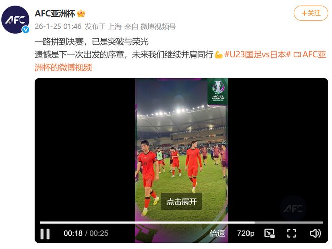 此外亚洲杯官博还发布视频,在视频中,U23教练组在赛后对球员们喊话:“抬起头来,进决赛了,你们已经很棒了!”
