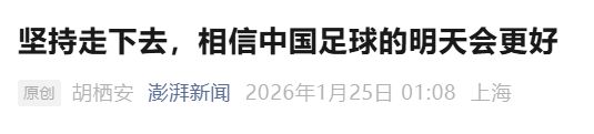 澎湃新闻:坚持走下去,相信中国足球的明天会更好