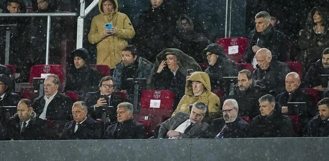 在Spotify诺坎普的看台上,大雨倾盆而下,拉波尔塔身处看台第一排看完了巴萨3-0奥维耶多的整场比赛。在被大雨淋透之后,拉波尔塔接受了加泰罗尼亚广播电台《午夜俱乐部》节目的采访,他轻描淡写地谈及了自己在看台上淋雨的经历。