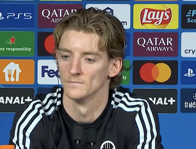北京时间1月29日英超日报,欧冠联赛第8轮,巴黎圣日耳曼将对阵纽卡斯尔联。赛前, 纽卡球员安东尼-戈登出席了发布会。