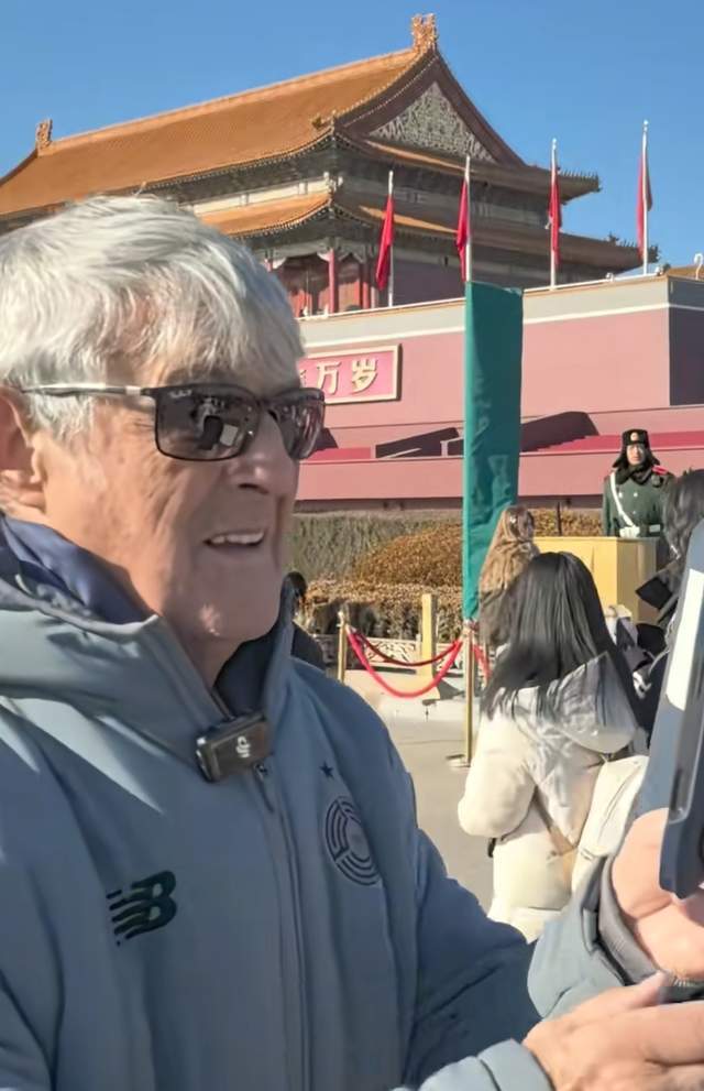 82岁前国足主帅米卢,游览北京天安门和故宫,和徐云龙、杨晨聚餐