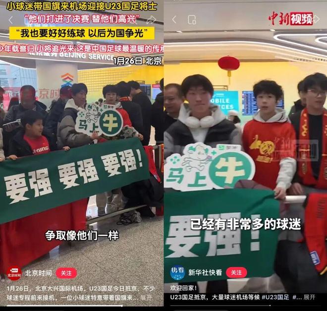 1月26日足球日报,一大批年轻球迷到大兴国际机场专程接U23国足的将士们回家,也能看到蒙牛出现在现场,将“要强”主张进一步传递。