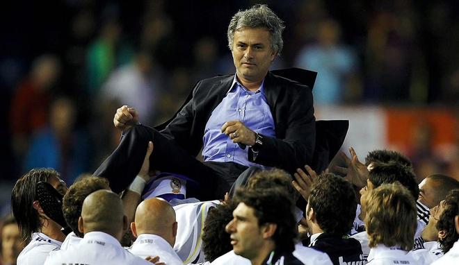 而在执教皇马之后,穆里尼奥虽然在第一个赛季有过客场0-5惨败巴萨的耻辱,但他最终率队在决赛中1-0复仇巴萨夺冠,此外还杀进了欧冠四强。而第二个赛季,穆里尼奥更是率领皇马百分问鼎西甲,终结了巴萨的三连冠。