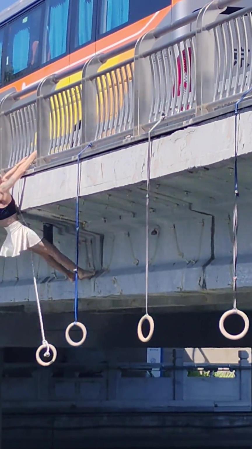 美女穿短裙徒手爬桥,既吸引眼球,又让人赞不绝口!