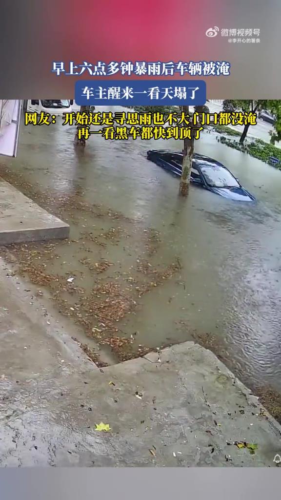 早上六点多钟暴雨后车辆被淹,车主醒来一看天塌了