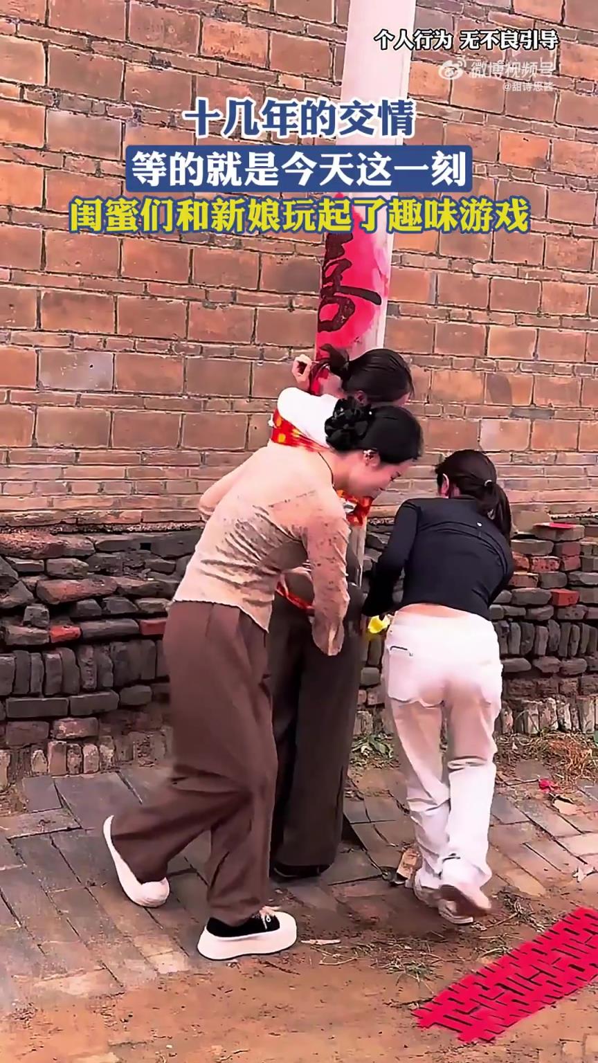 十几年的交情,等的就是今天这一刻,闺蜜们和新娘玩起了趣味游戏