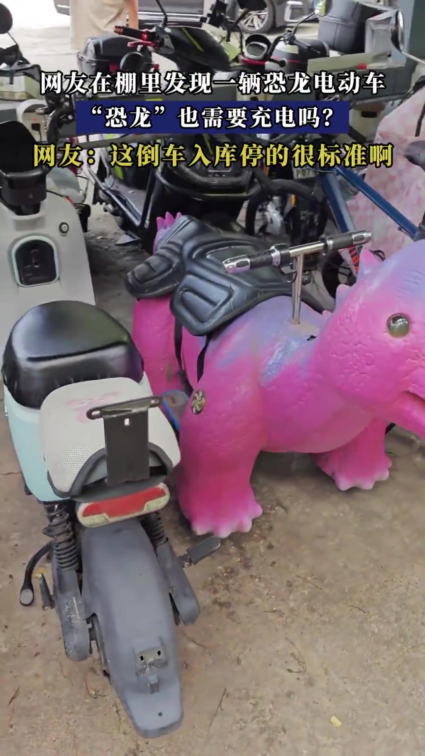 网友在棚里发现一辆恐龙电动车,“恐龙”也需要充电吗?