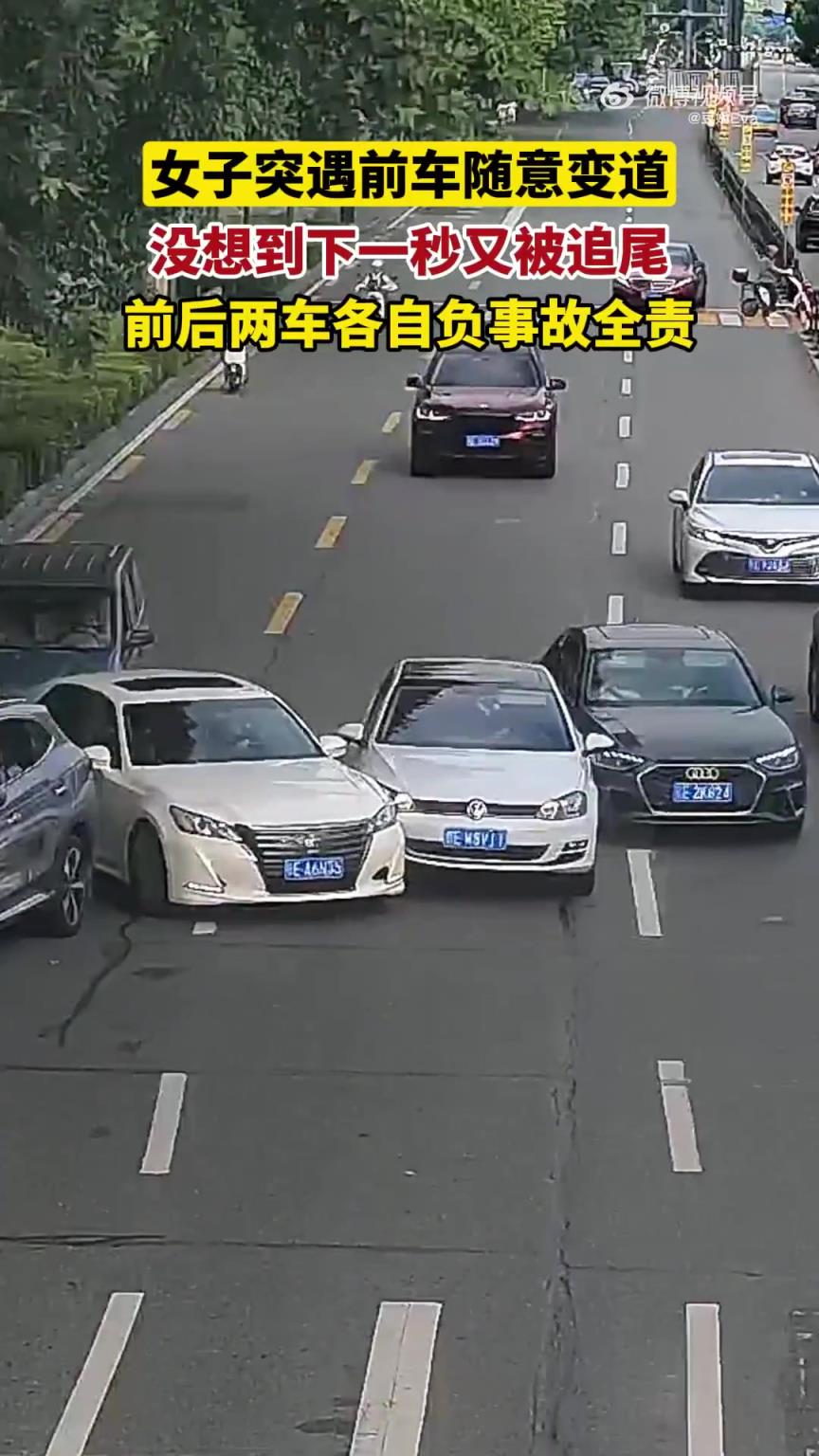 女子遇前车随意变道后又遭追尾,责任如何判定?
