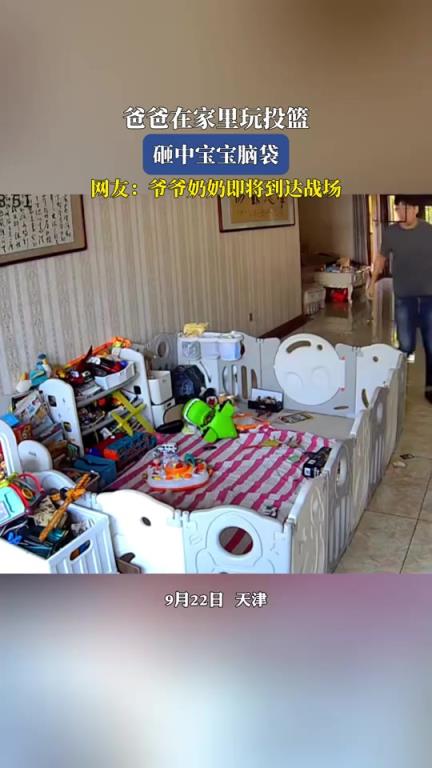 爸爸在家里玩投篮,砸中宝宝脑袋,网友:爷爷奶奶即将到达战场