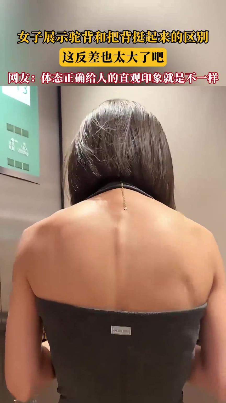 女子展示驼背和把背挺起来的区别,这反差也太大了吧!!