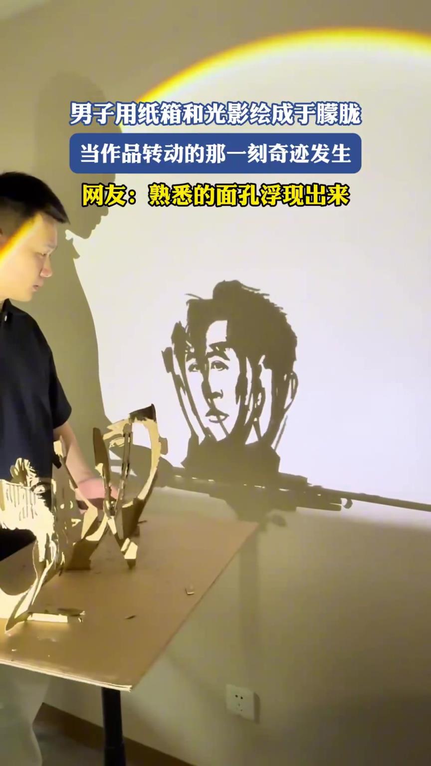 男子用纸箱和光影绘成于朦胧,当作品转动的那一刻奇迹发生