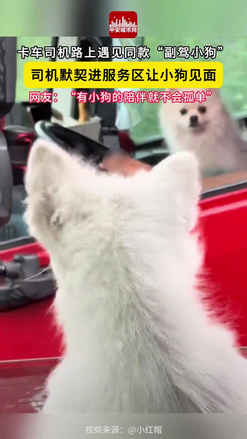卡车司机路上遇见同款“副驾小狗”,司机默契进服务区让小狗见面