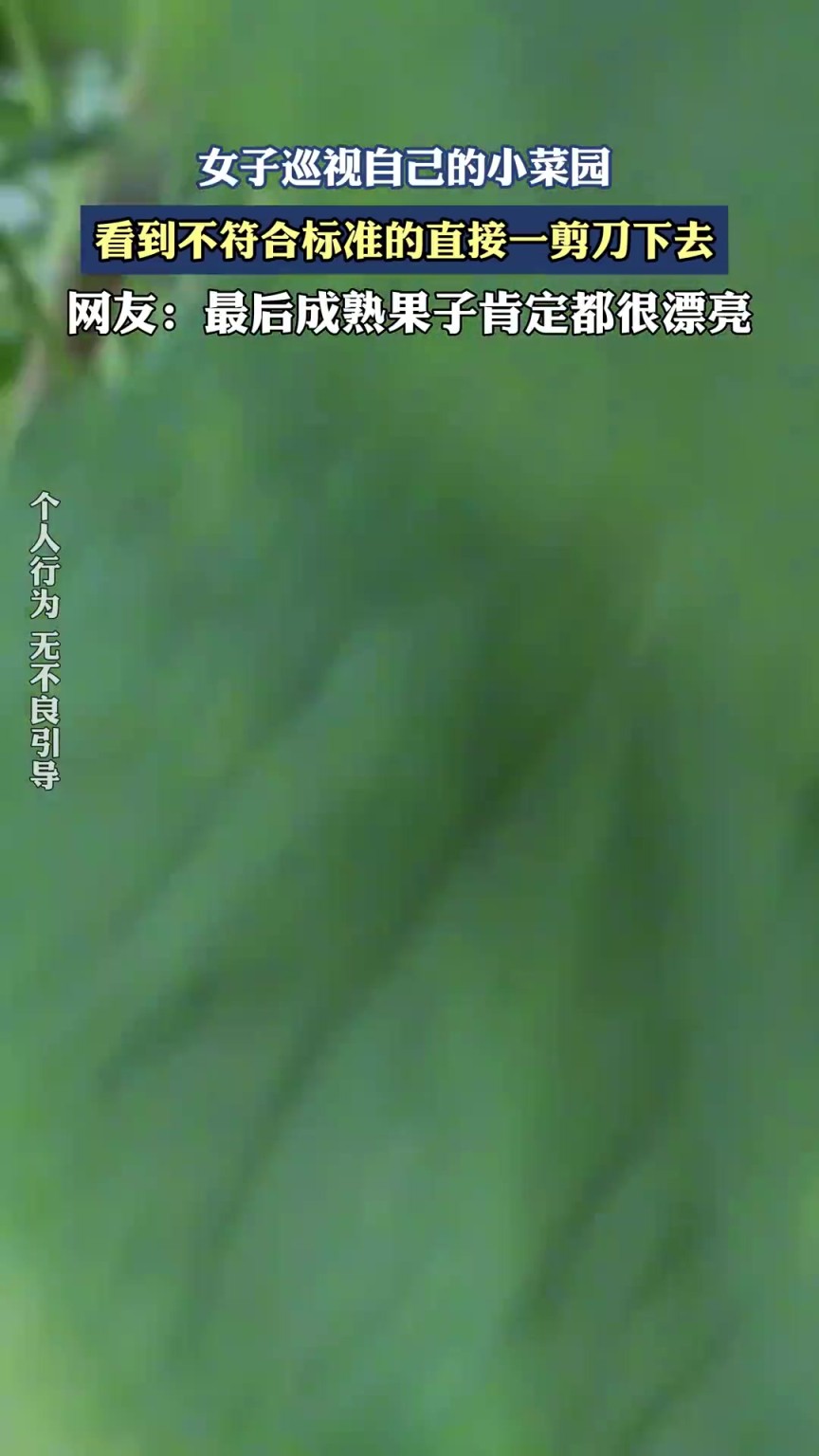 女子巡视自己的小菜园,看到不符合标准的直接一剪刀下去