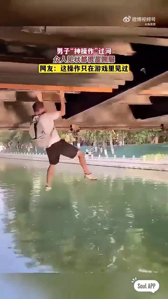 女子过河现“神操做”,寡人拜服,网友称似游戏场景