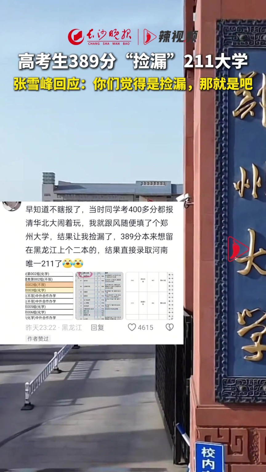 高考生389分“捡漏”211大学,张雪峰回应引热议