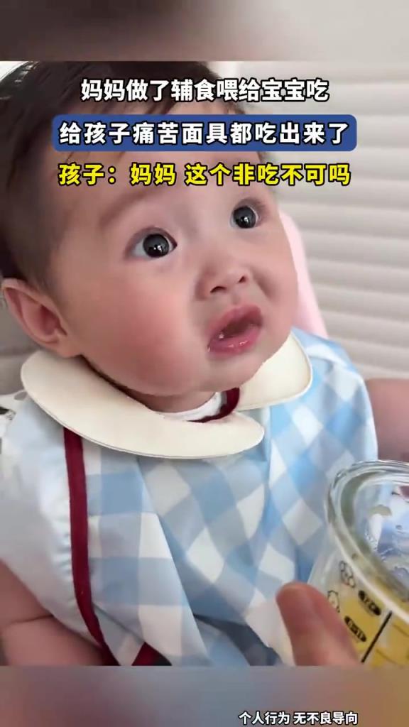 妈妈做了辅食喂给宝宝吃,给孩子痛苦面具都吃出来了
