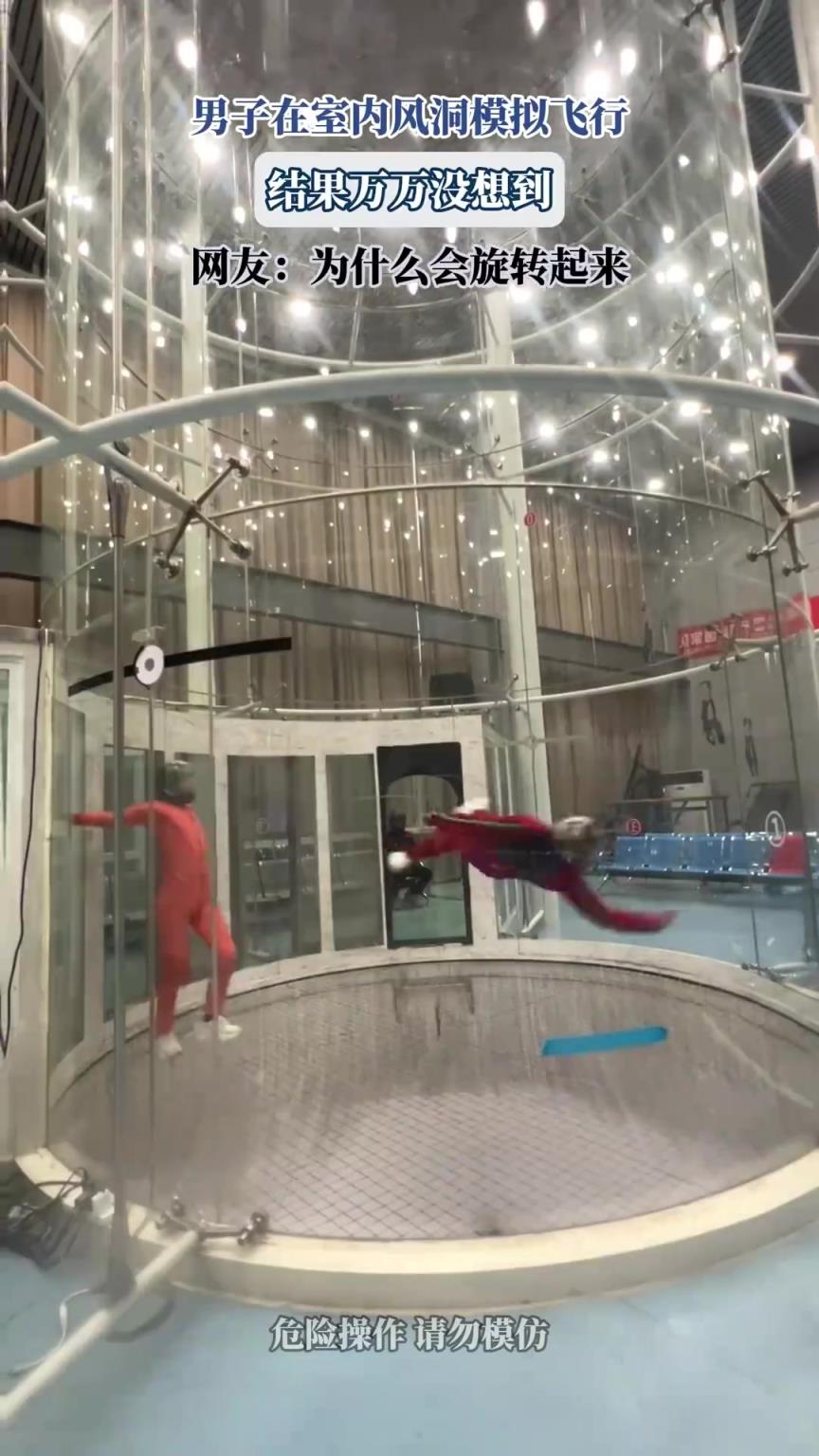 男子在室内风洞模拟飞行,结果万万没想到!