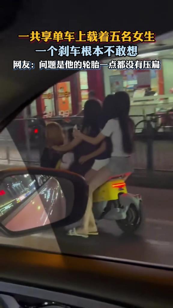 一共享单车上载着五名女生,一个刹车根本不敢想…