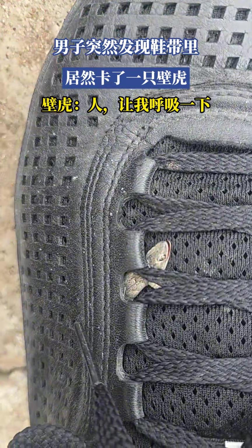 男子突然发现鞋带里,居然卡了一只壁虎!!