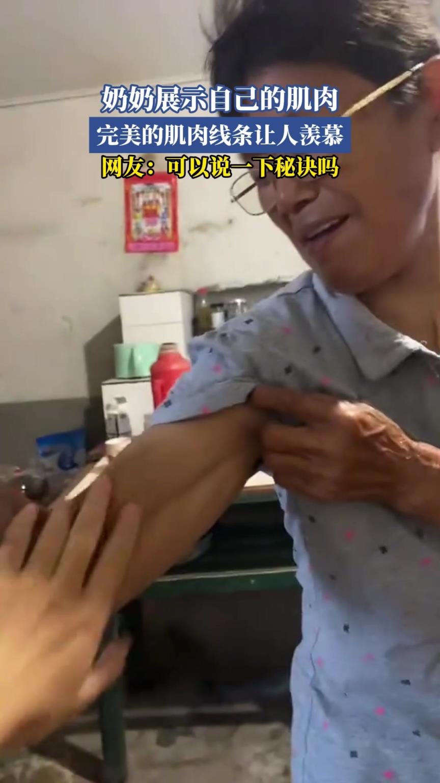 奶奶展示自己的肌肉,完美的肌肉线条让人羡慕!