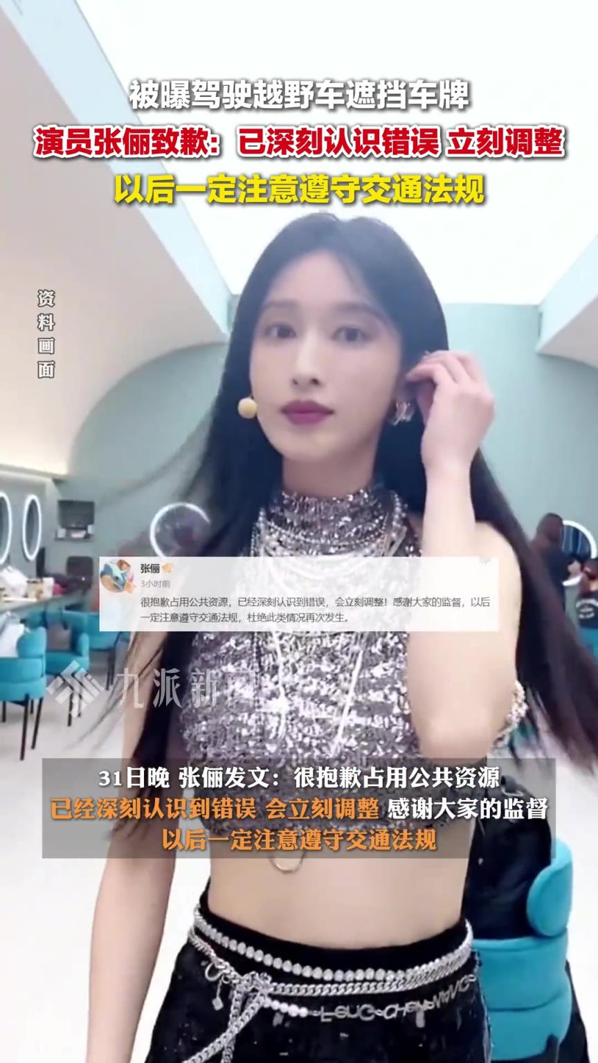 演员张俪就遮挡车牌道歉 :已经深刻认识到错误
