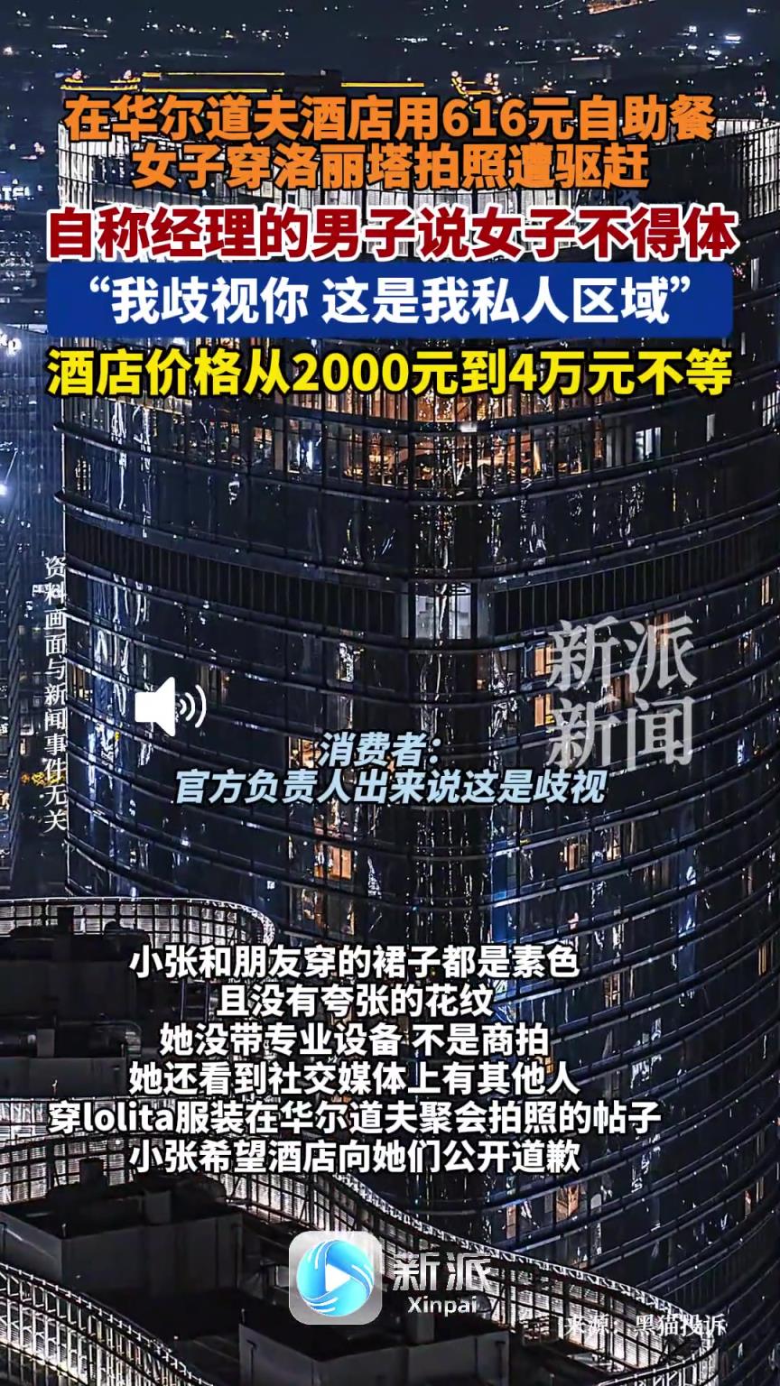 在华尔道夫酒店用616元自助餐,女子穿洛丽塔拍照遭驱赶