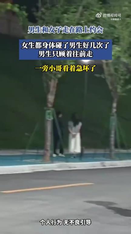男生和女子路上约会,女生多次身体触碰男生