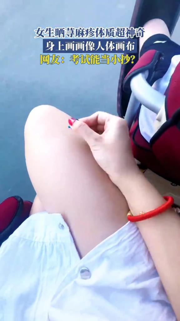 女生晒荨麻疹体质,身上画画像人体画布