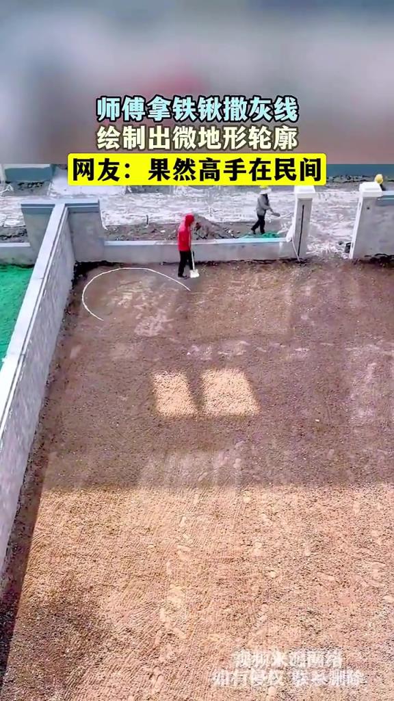 师傅拿铁锹撒灰线,绘制出微地形轮廓