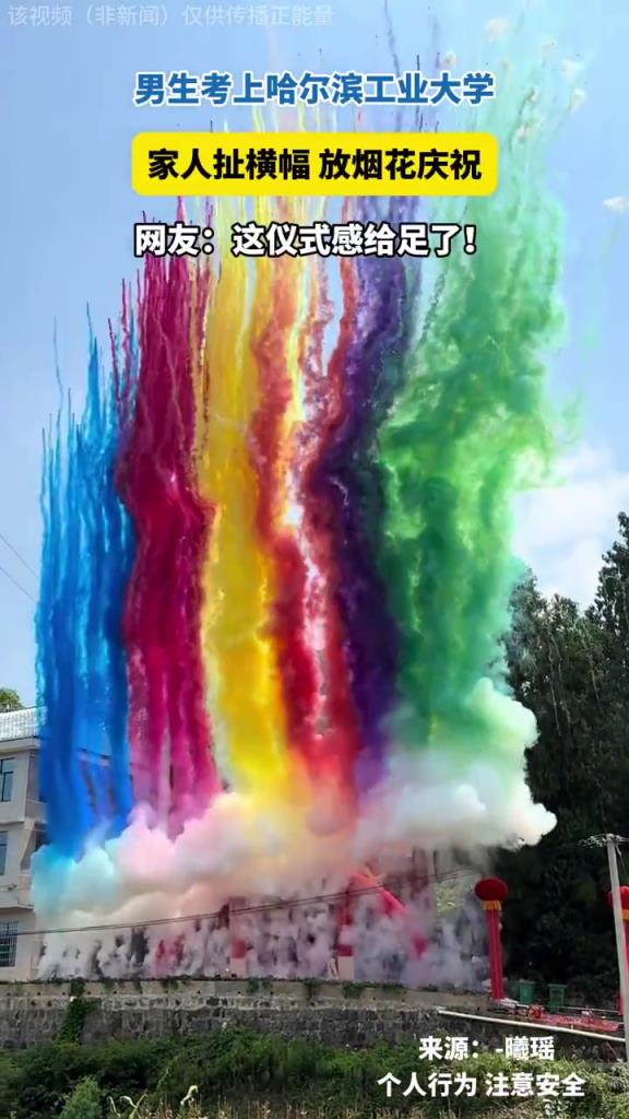 男生考上哈尔滨工业大学,家人扯横幅放烟花庆祝