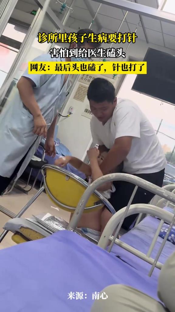 诊所里孩子生病要打针,害怕到给医生磕头了