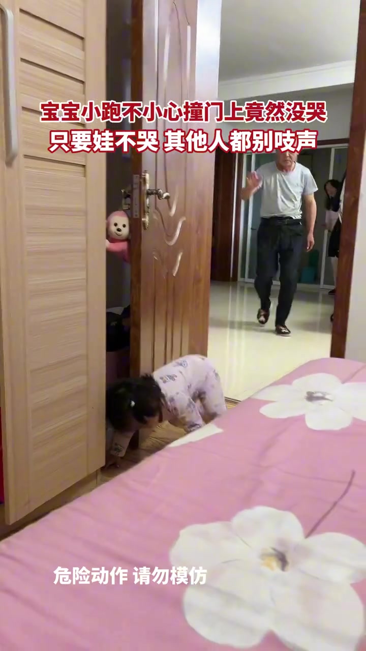 宝宝小跑不小心撞门上竟然没哭,只要娃不哭,其他人都别吱声