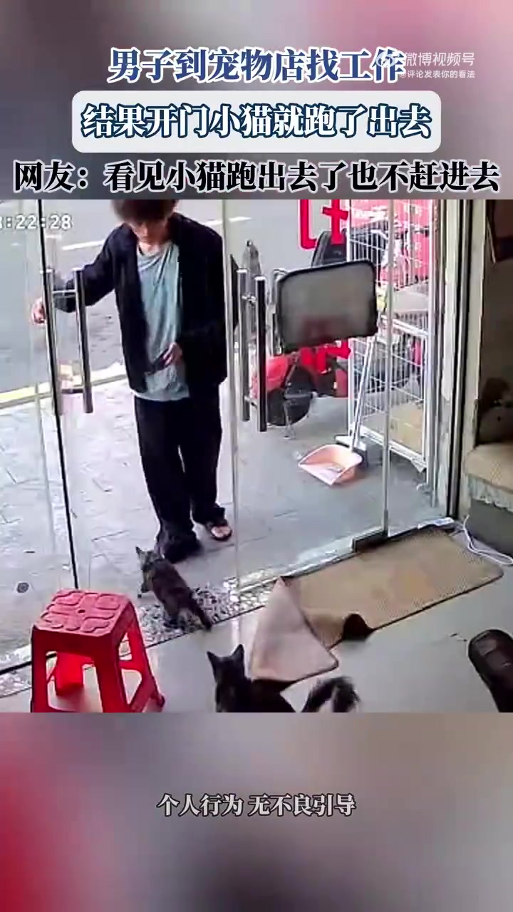 男子到宠物店找工作,结果开门小猫就跑了出去