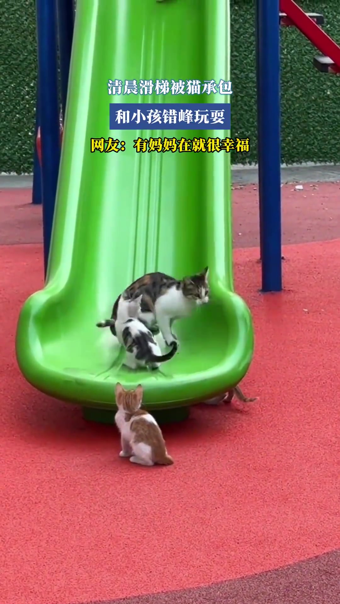清晨滑梯被猫承包,和小孩错峰玩耍