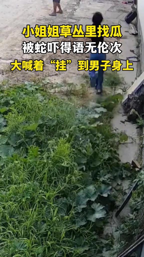吓到崩溃!女子在草丛里找瓜,被突然出现的蛇吓得半死。
