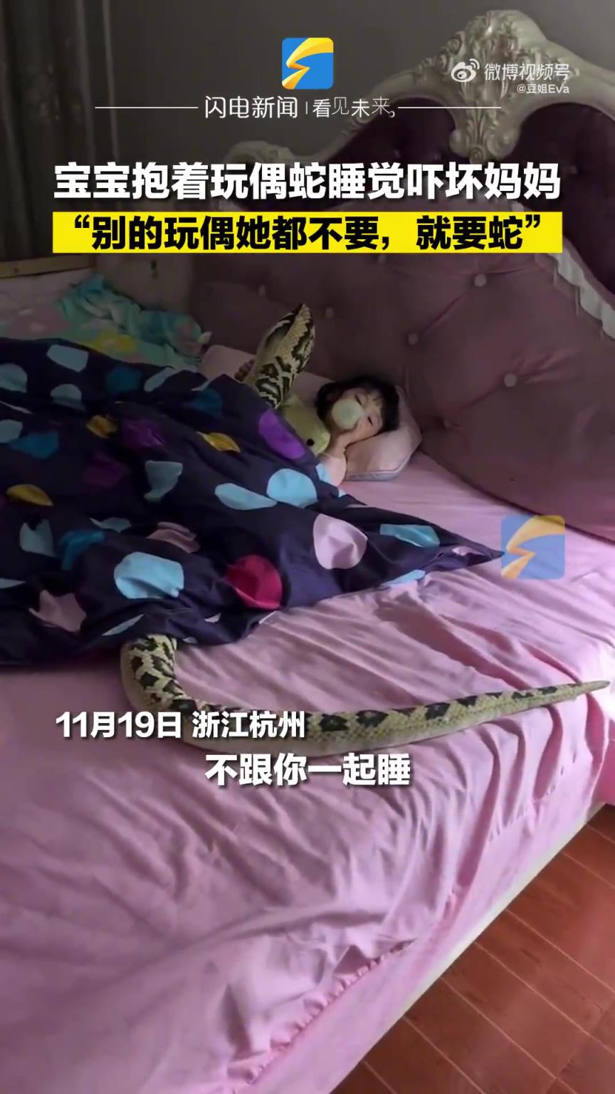 杭州一宝宝偏爱玩偶蛇抱着入睡,妈妈被吓到